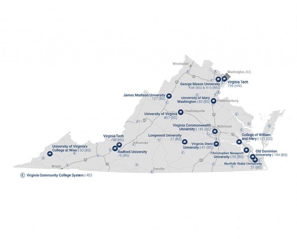 Through its historic, innovative Tech Talent Investment Program, the Commonwealth of Virginia, donors, and corporate partners are investing more than $2 billion to expand Virginia’s tech talent pipeline, doubling the number of graduates each year in computer science and closely related fields. Additionally, Virginia higher education institutions already produce roughly 12,000 tech-related degrees and certificates annually in areas ranging from computer science to modeling and simulation.